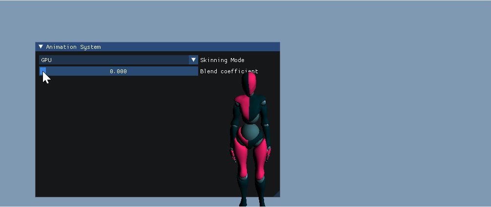 This project is an application of the concepts and code presented in Gabor Szauer's Hands-On C++ Game Animation Programming. It supports loading a glTF model and rendering blended skinned animations, with the skinning logic being run on the GPU or on the CPU depending on the configuration. It is written in C++, with OpenGL being used for rendering and glfw for the window context.