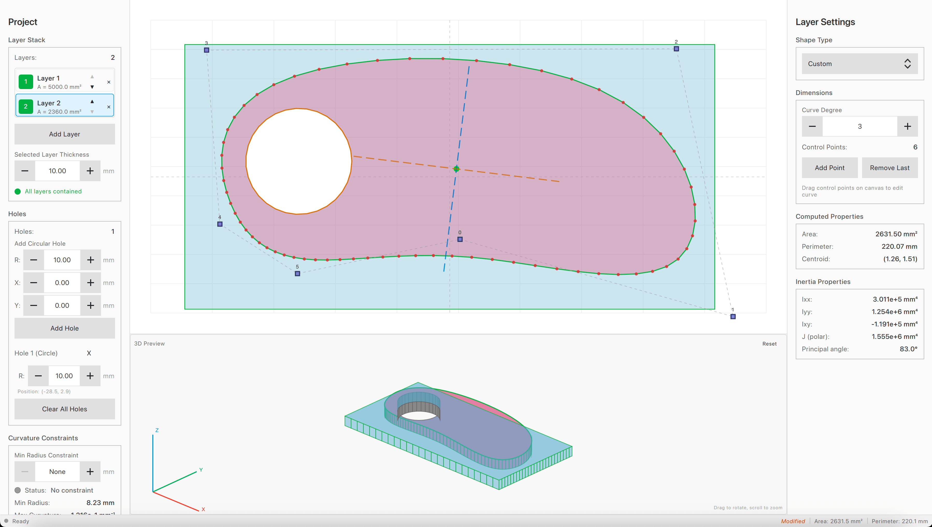 Corbusier: An application for designing layered 2D profiles with manufacturing constraints